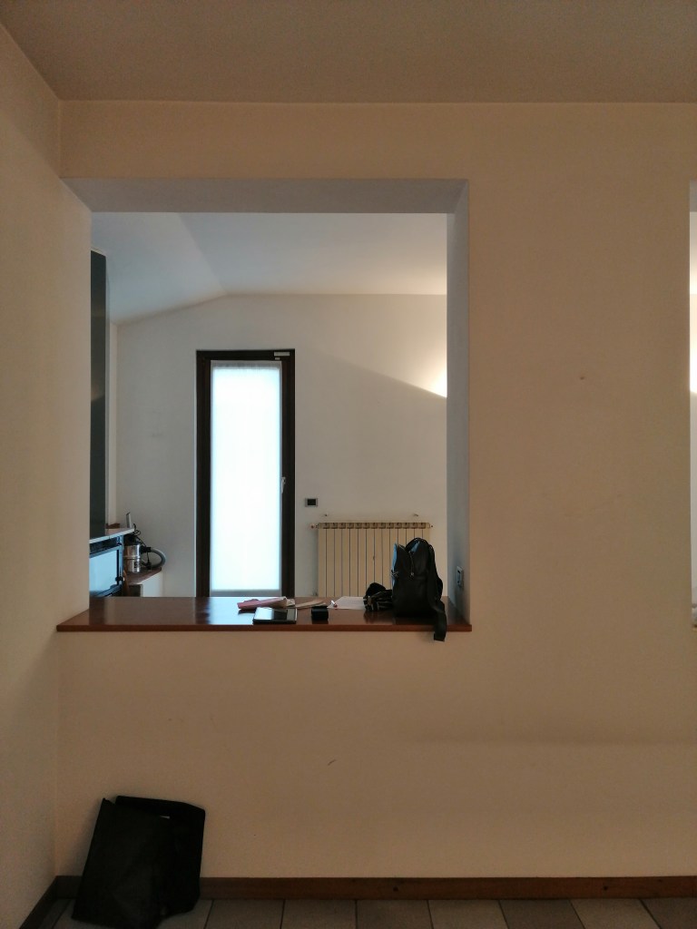 La base di partenza è stata il piano terreno, dove la presenza di una fioriera intena ed un camino volevano essere rimosse. Il dislivello di mezzo metro presente nel soggiorno divideva gli spazi che nella visione dei committenti poteva essere funzionalmente descritta con una parte da dedicarsi alla zona soggiorno ed una alla zona pranzo. Per cercare di dare più luminosità e profondità agli spazi, la proposta progettuale risiedette nell’abbattere la porzione di muro a dividere cucina e zona pranzo mantenendo la possibilità di chiudere il locale con una porta a vetro composta da due pannelli a trascinamento che mediante la trasparenza del vetro rendevano l’ambiente un tutt’uno ma comunque separabile nel caso di odori. Lo spazio tra la cucina e la zona pranzo è diventato uno spazio lettura mediante la progettazione di una libreria su misura collocata nella nicchia di passaggio tra i due ambienti.