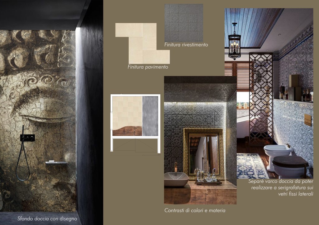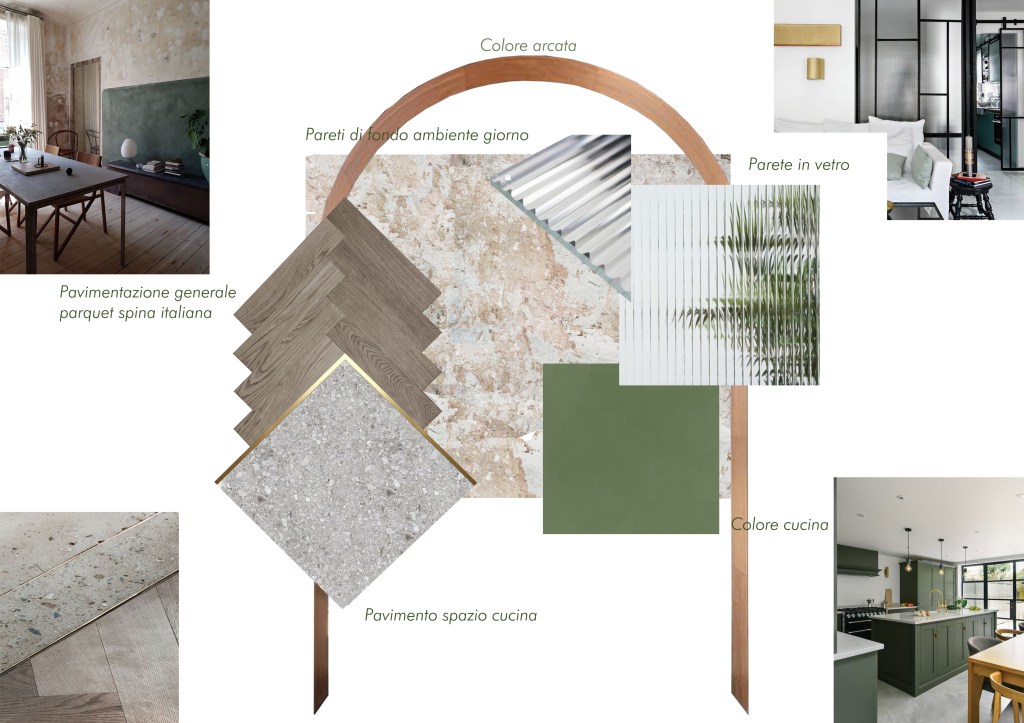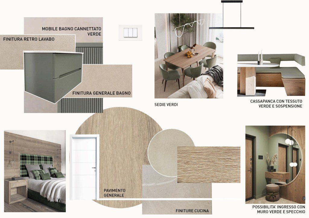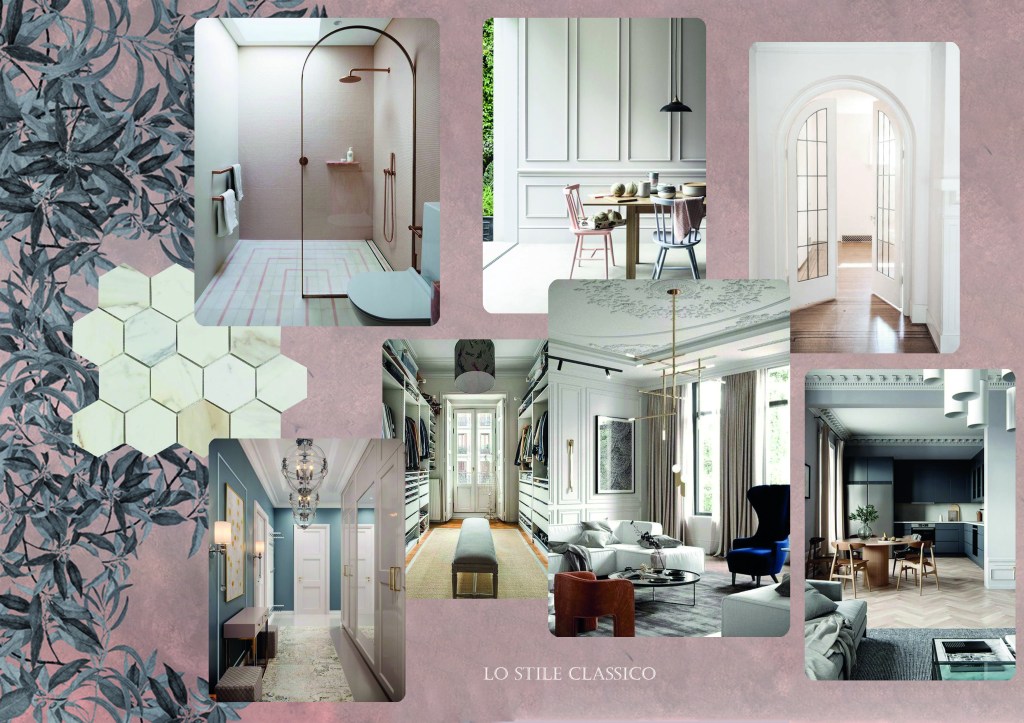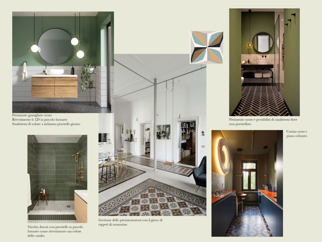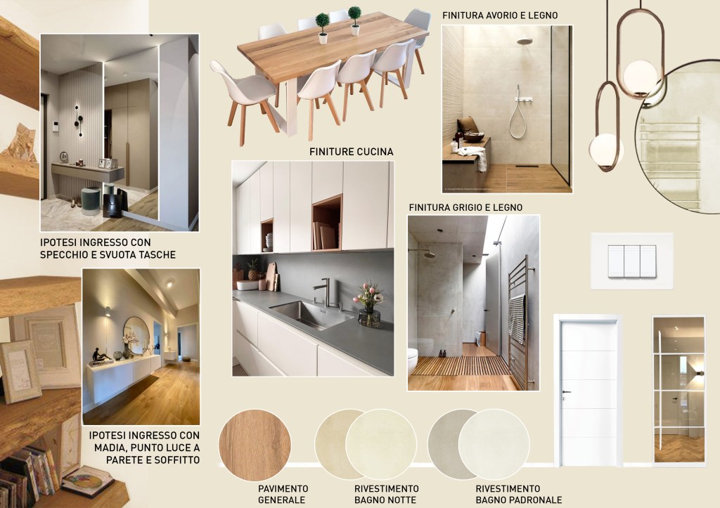 Nel contesto di ristrutturazione completa di una stanza o appartamento può tornare utile, per permettere ai clienti di comprendere meglio lo stile che avrà la casa, la realizzazione di un moodboard. Si tratta di comporre una tavola la quale contenga i dettagli tra stile, colori e materiali scelti come nei casi a seguire. I Moodboard vanno sempre interpretati e vestiti sul caso specifico, per comprendere a cosa si riferiscano el suggestioni riportate.