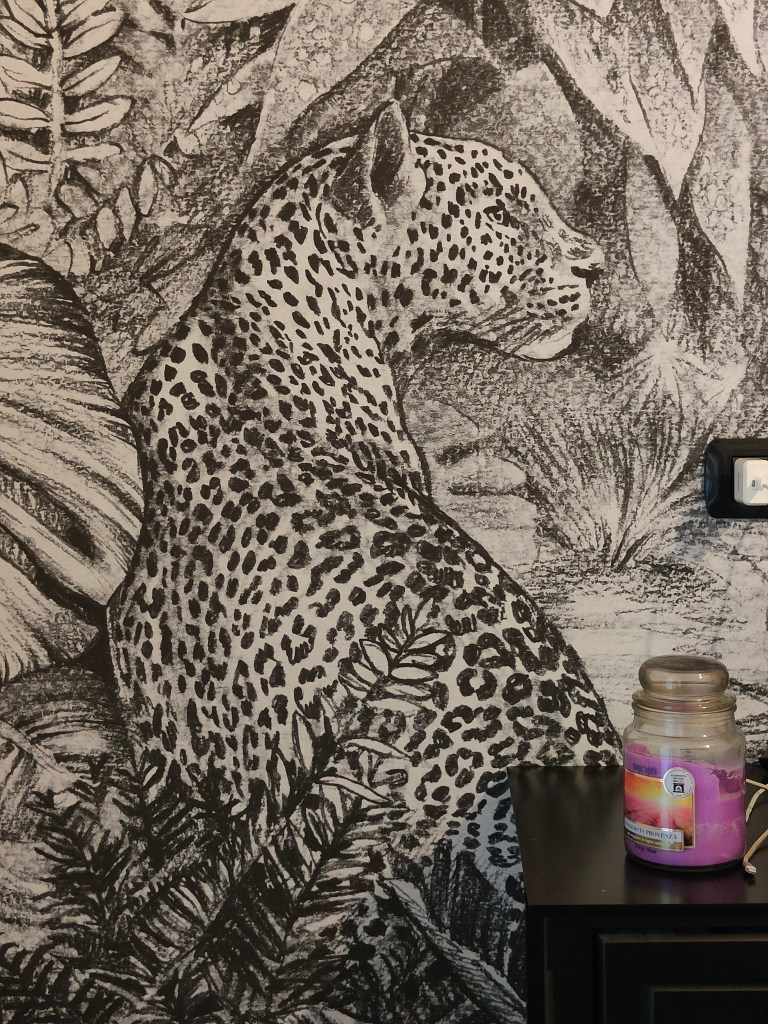 Per questa stanza da letto di una giovane coppia dal carattere deciso mi è stato chiesto un restyling. La passione della ragazza per gli animali dell’africa ed asia abbiamo cercato una carta da parati che fosse lo sfondo del letto, dal lato opposto invece delle modanature accompagnano la definizione della stanza
