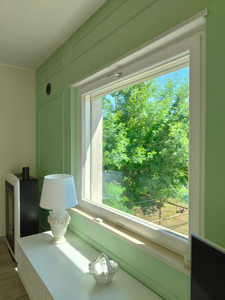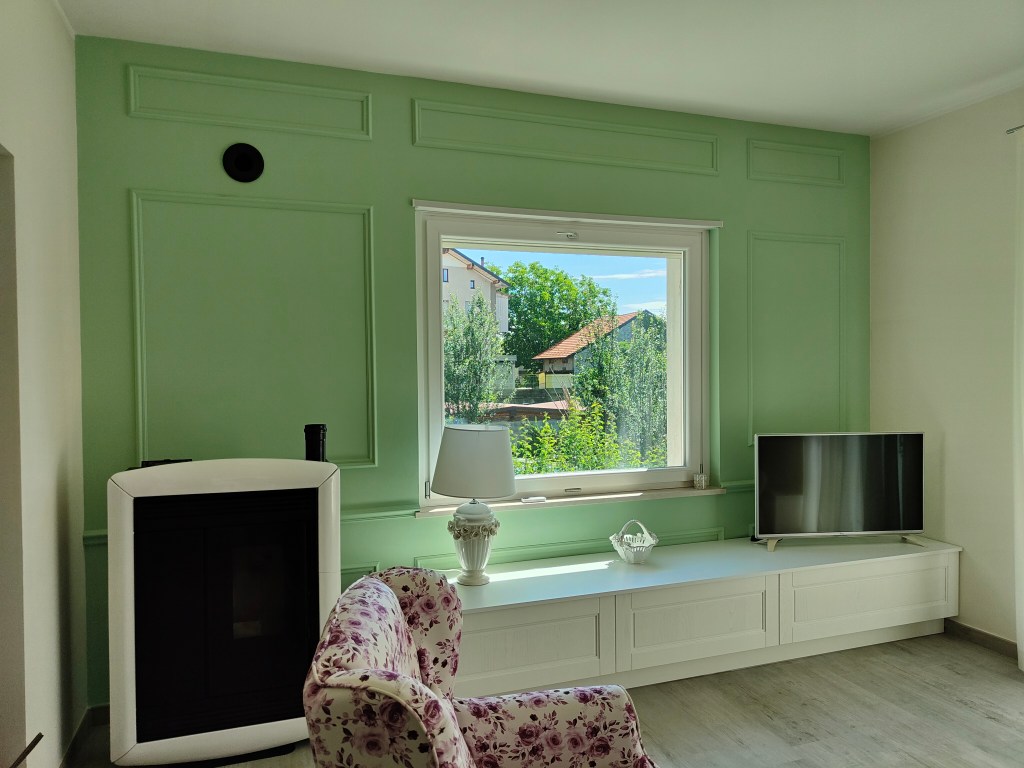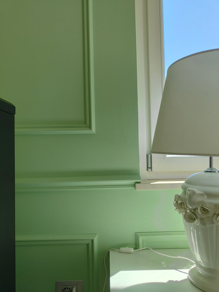Rinnovare un ambiente non è sempre questione di mobilio, delle volte basta una parete per dare una nuova veste ad un ambiente. In questo caso, lo stile classico viene richiamato dalle boiserie a muro, il colore verde richiama il paesaggio naturale circostante. La semplicità di un colore, l’eleganza di un motivo.