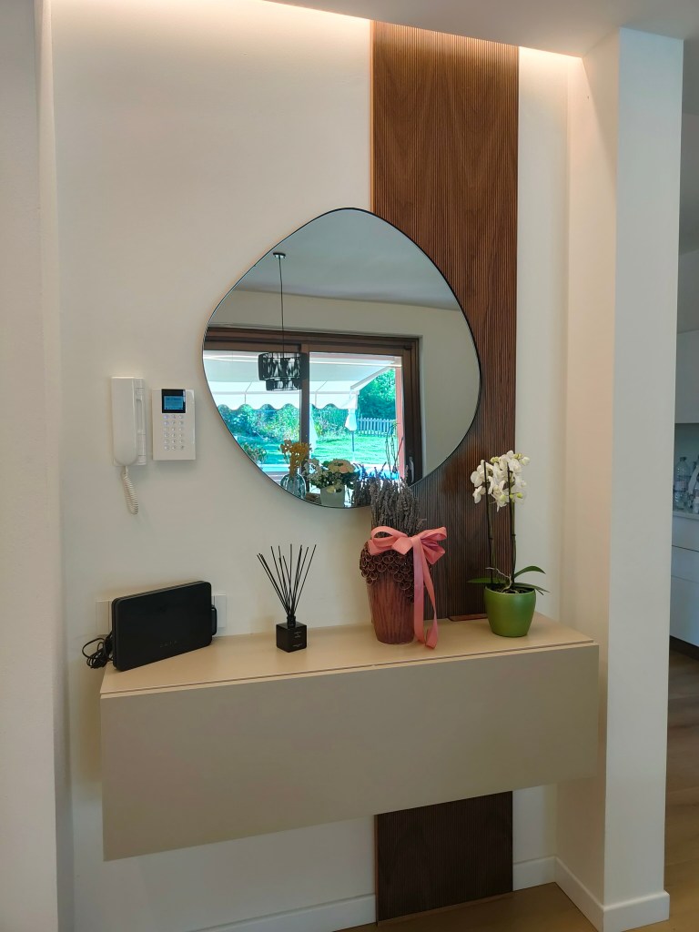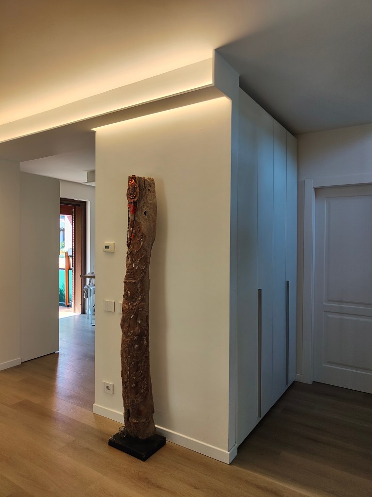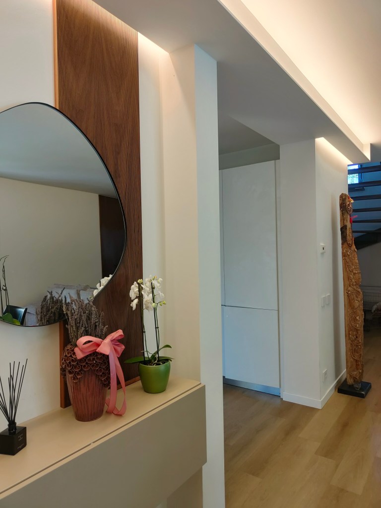 Cambiare casa si porta con sè molti dubbi, tra i quali la scelta di cambiare o meno i mobili. Nel caso di specie ho accompagnato i signori nel restyling della zona giorno di casa loro sia a livello di mobilio che di luci. Grazie alla collaborazione con mobilieri di fiducia abbiamo potuto utilizzare materiali di ottima qualità, con boiserie intagliate in legno. La zona di ingresso invece grazie ad un ribassamento in cartongesso ha una nuova luce.
